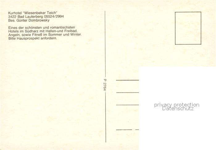 73167986 Bad Lauterberg Kurhotel Wiesenbeker Teich Partie am See postalisch nicht gelaufen Erhaltung siehe scans [LiesaD40] KatCode: 11110003156002