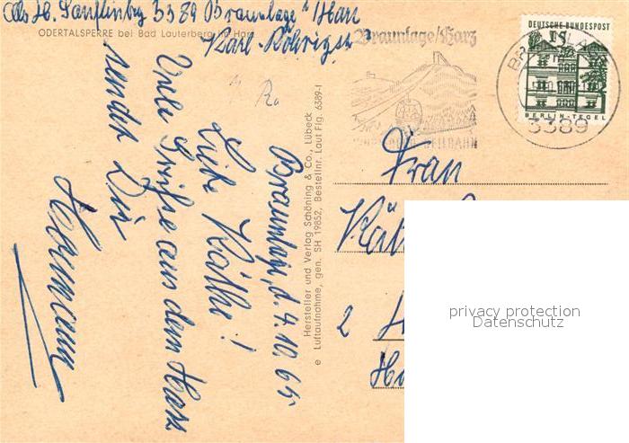 73097886 alte Postkarte Bad Lauterberg Odertalsperre Fliegeraufnahme postalisch gelaufen Erhaltung siehe scans [WerneD78] KatCode: 11110003156002