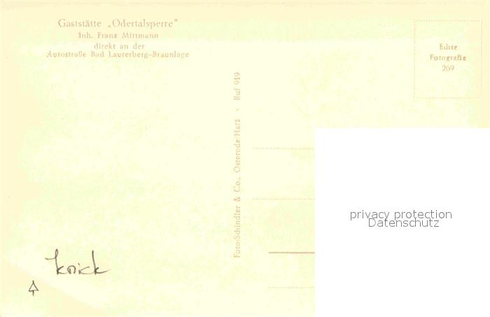 72892399 Bad Lauterberg Odertalsperre postalisch nicht gelaufen Erhaltung siehe scans [PaolaD17] KatCode: 11110003156002