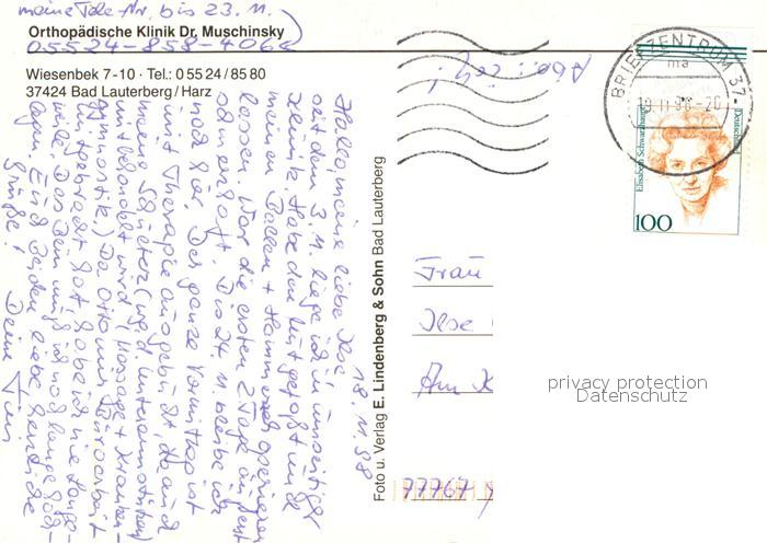 73321203 alte Postkarte Bad Lauterberg Orthopaedische Klinik Dr Muschinsky postalisch gelaufen Erhaltung siehe scans [FriedD77] KatCode: 11110003156002