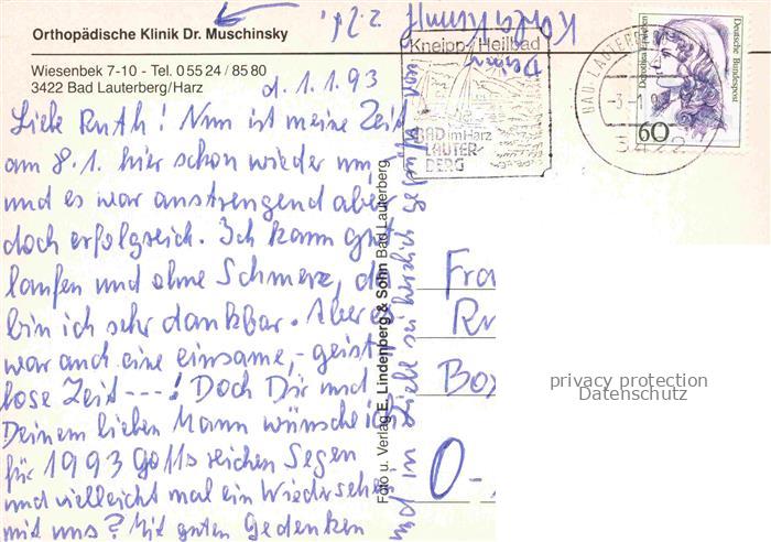 74040679 alte Postkarte Bad Lauterberg Orthopaedische Klinik Dr. Muschinsky Hallenbad Gymnastikraum Therapie postalisch gelaufen Erhaltung siehe scans [FriedD77] KatCode: 11110003156002