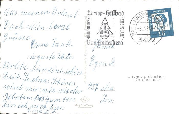 72354042 alte Postkarte Bad Lauterberg Panorama Kneipp Heilbad postalisch gelaufen Erhaltung siehe scans KatCode: 11110003156002