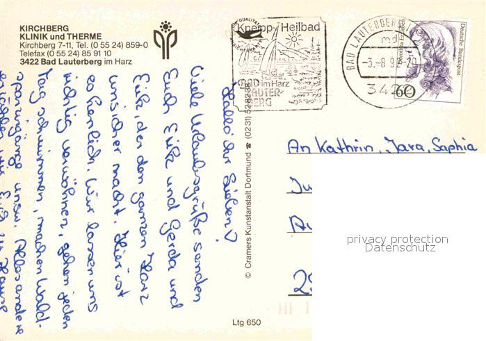 72863707 alte Postkarte Bad Lauterberg Panorama Kneippheilbad Kirchberg Klinik Therme Bergseilbahn Haus des Kurgastes Kurpark Odertalsperre Wiesenbeker Teich postalisch gelaufen Erhaltung siehe scans [FriedD77] KatCode: 11110003156002