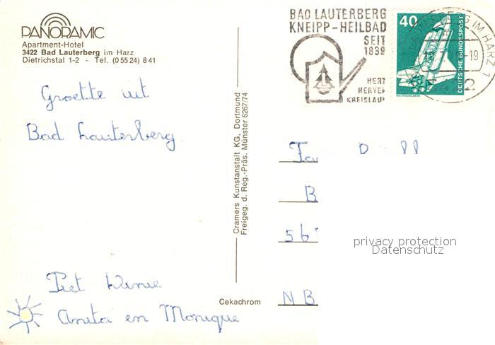 72938601 alte Postkarte Bad Lauterberg Panoramic Apartment-Hotel postalisch gelaufen Erhaltung siehe scans [PaolaD17] KatCode: 11110003156002