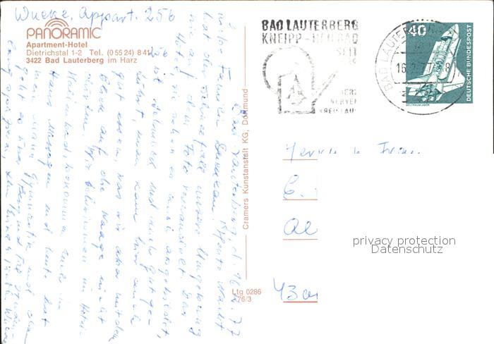 alte Postkarte Bad Lauterberg Panoramic Apartment Hotel postalisch gelaufen Erhaltung siehe scans