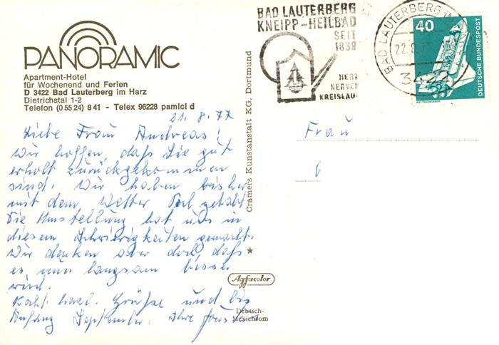 73944443 alte Postkarte Bad Lauterberg Panoramic Apartment-Hotel Restaurant postalisch gelaufen Erhaltung siehe scans [FriedD77] KatCode: 11110003156002
