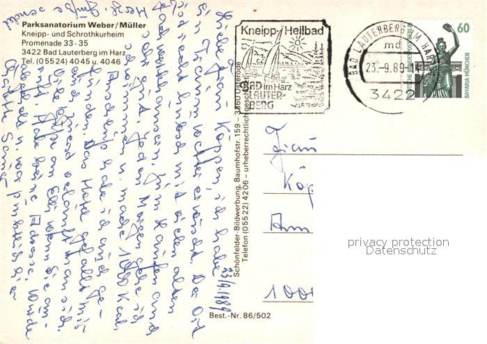72987549 alte Postkarte Bad Lauterberg Parksanatorium Weber postalisch gelaufen Erhaltung siehe scans [LiesaD40] KatCode: 11110003156002