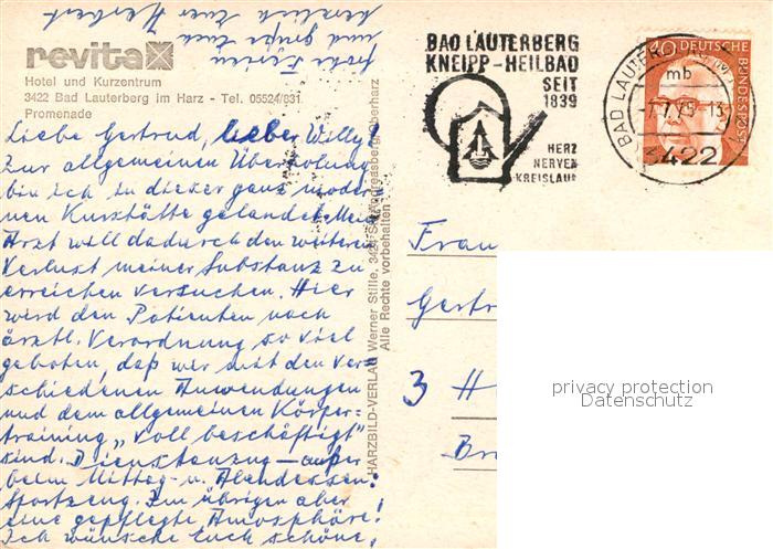 72931098 alte Postkarte Bad Lauterberg revita Hotel Kurzentrum postalisch gelaufen Erhaltung siehe scans [KathaD81] KatCode: 11110003156002