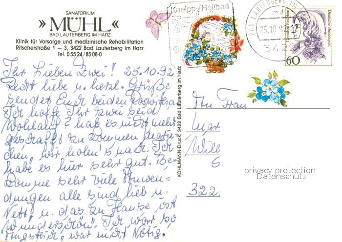 73165384 alte Postkarte Bad Lauterberg Sanatorium Muehl postalisch gelaufen Erhaltung siehe scans [KathaD81] KatCode: 11110003156002