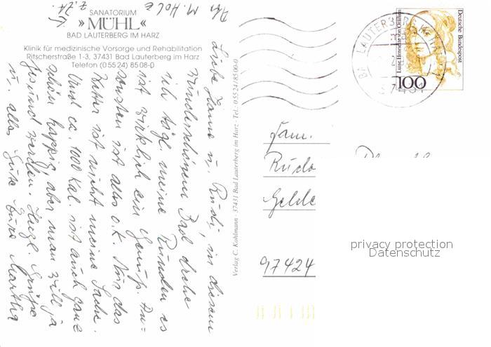 72719763 alte Postkarte Bad Lauterberg Sanatorium Muehl Schwimmbad postalisch gelaufen Erhaltung siehe scans [LiesaD40] KatCode: 11110003156002