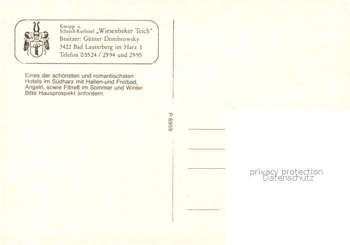 73093017 Bad Lauterberg Schroth Kurhotel Wiesenbeker Teich postalisch nicht gelaufen Erhaltung siehe scans [KathaD81] KatCode: 11110003156002