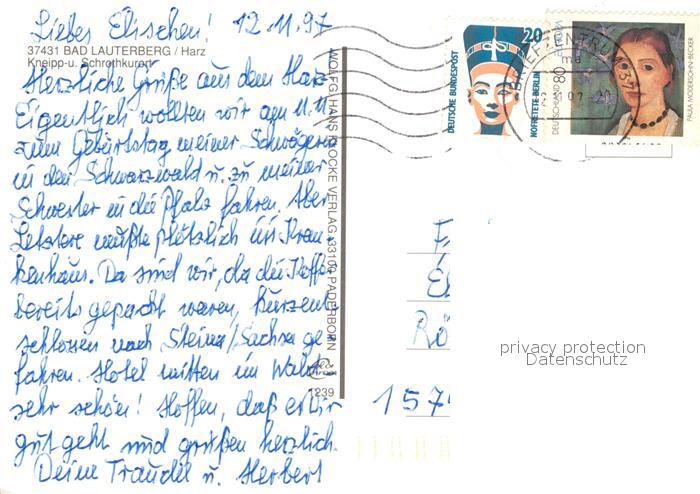 73019407 alte Postkarte Bad Lauterberg Sebastian Kneipp Denkmal Joh. Schroth-Denkmal Kurhaus postalisch gelaufen Erhaltung siehe scans [NatalD47] KatCode: 11110003156002