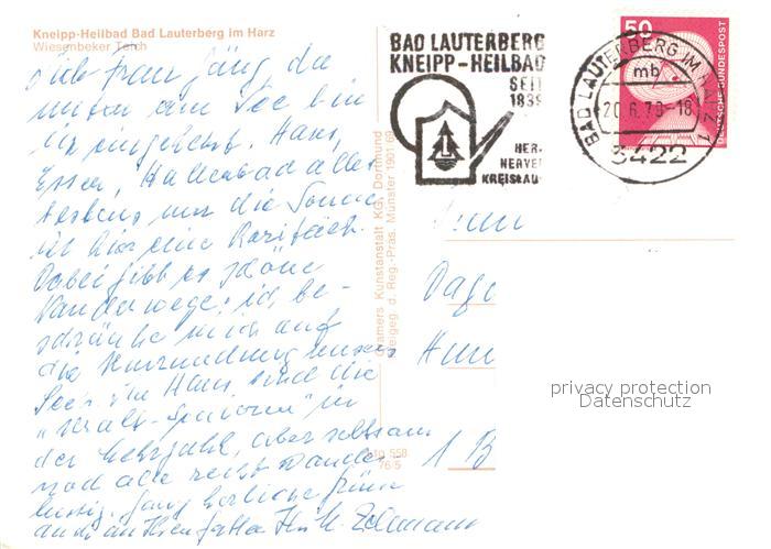 73719305 alte Postkarte Bad Lauterberg Wiesenbeker Teich postalisch gelaufen Erhaltung siehe scans [LiesaD40] KatCode: 11110003156002