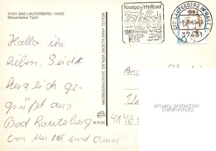 72974011 alte Postkarte Bad Lauterberg Wiesenbeker Teich postalisch gelaufen Erhaltung siehe scans [PaolaD17] KatCode: 11110003156002