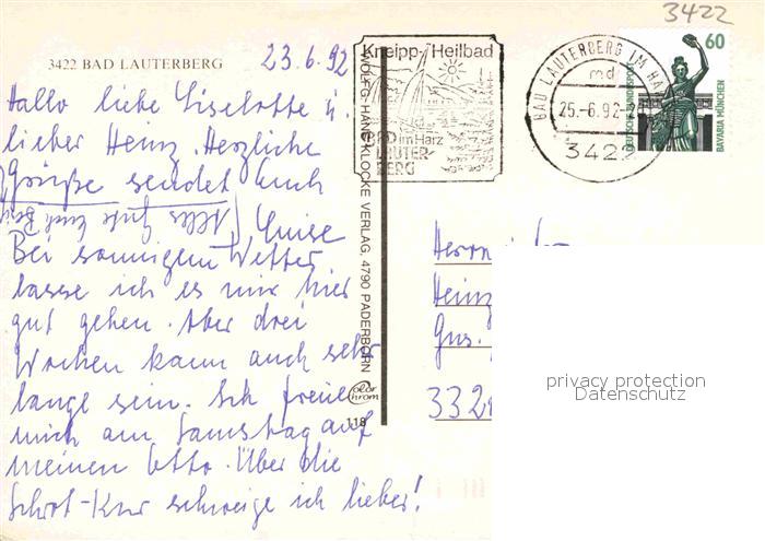 72909946 alte Postkarte Bad Lauterberg Wiesenbeker Teich Glockenspiel Wissmann-Denkmal Hallenwellenbad postalisch gelaufen Erhaltung siehe scans [LiesaD40] KatCode: 11110003156002