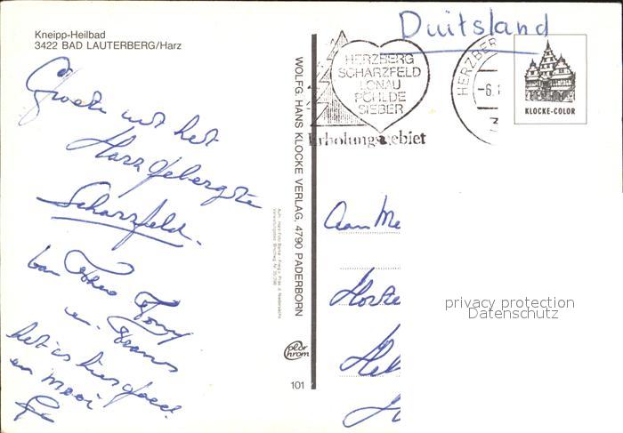 72429791 alte Postkarte Bad Lauterberg Wiesenbeker Teich Panorama Kurpark Wissmann Denkmal Ev Kirche Musikpavillon postalisch gelaufen Erhaltung siehe scans KatCode: 11110003156002