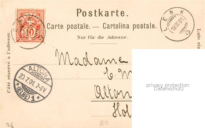 13790277 alte Postkarte Bad Lenk Simmental BE Teilansicht m. Frau a. d. Simmental postalisch gelaufen Erhaltung siehe scans [LiesaD40] KatCode: 11470060215598
