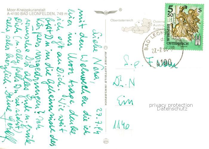 73231334 alte Postkarte Bad Leonfelden Kurhaus postalisch gelaufen Erhaltung siehe scans [LiesaD40] KatCode: 11390313041603