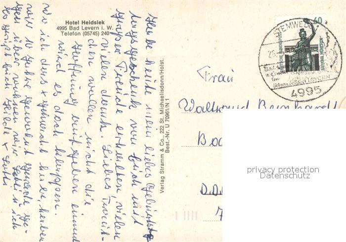 73678886 alte Postkarte Bad Levern Hotel Heidsiek Blick zum Ort mit Kirche postalisch gelaufen Erhaltung siehe scans [FriedD77] KatCode: 11110005770044