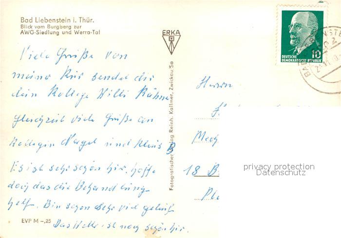 72984064 alte Postkarte Bad Liebenstein AWG Siedlung und Werra Tal Blick vom Burgberg postalisch gelaufen Erhaltung siehe scans [WerneD78] KatCode: 11110016063002