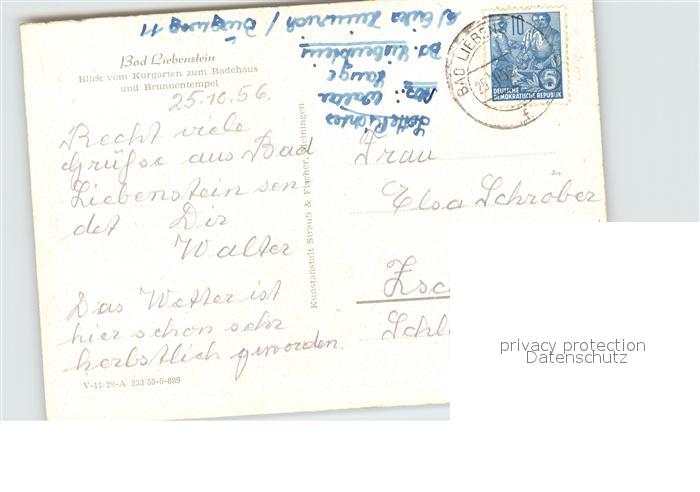 72503896 alte Postkarte Bad Liebenstein Blick vom Kurgarten zum Badehaus und Brunnentempel postalisch gelaufen Erhaltung siehe scans KatCode: 11110016063002