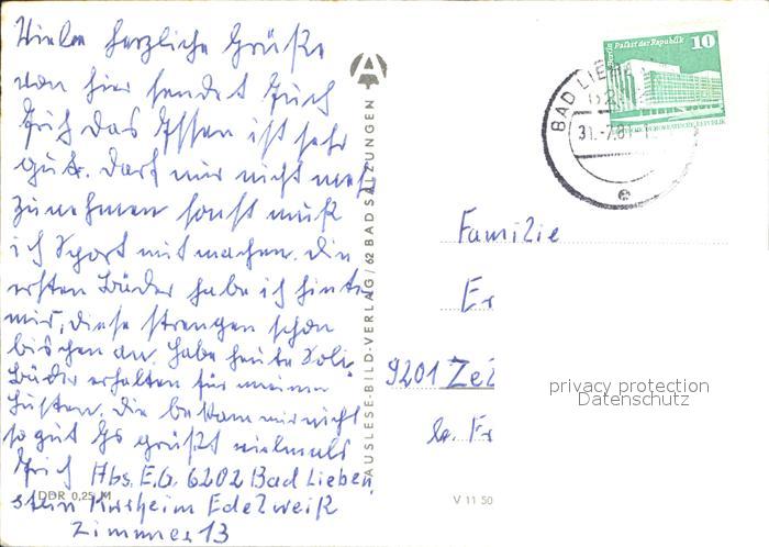 72368471 alte Postkarte Bad Liebenstein Brunnentempel Klubhaus Dr. Salvador Allende Haus Feodora postalisch gelaufen Erhaltung siehe scans KatCode: 11110016063002