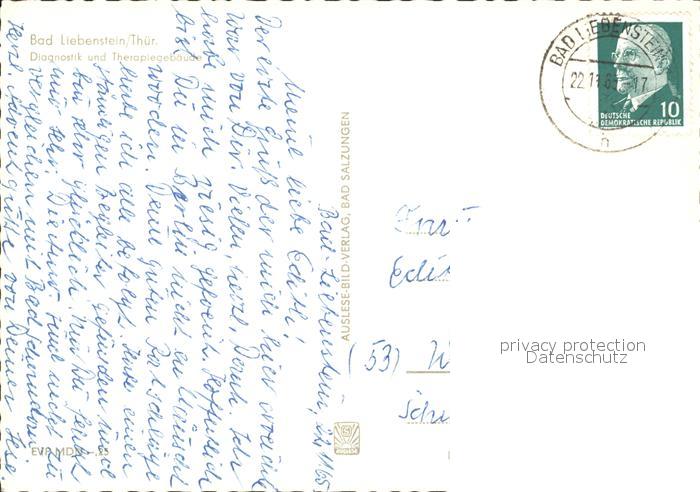 72250249 alte Postkarte Bad Liebenstein Diagnostik und Therapiegebaeude Brunnen postalisch gelaufen Erhaltung siehe scans KatCode: 11110016063002