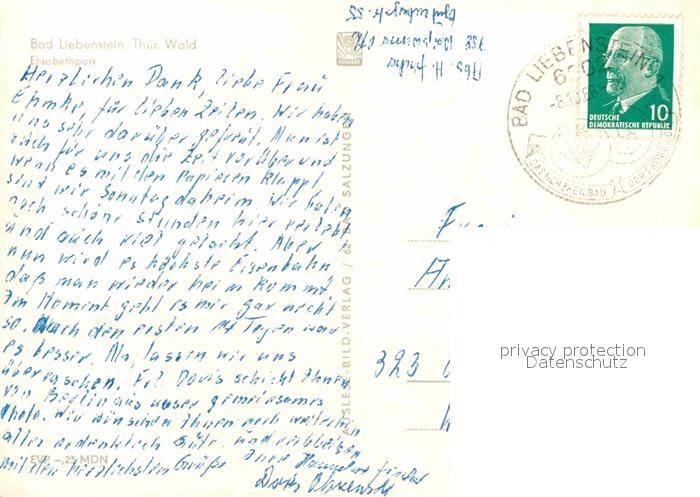 72642630 alte Postkarte Bad Liebenstein Elisabethpark Schwanenteich postalisch gelaufen Erhaltung siehe scans [WerneD78] KatCode: 11110016063002