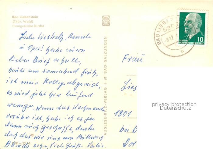 73099308 alte Postkarte Bad Liebenstein Evangelische Kirche postalisch gelaufen Erhaltung siehe scans [KathaD81] KatCode: 11110016063002