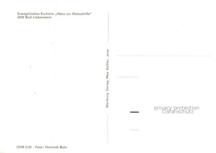 73766763 Bad Liebenstein Evangelisches Kurheim Haus zur Gotteshilfe postalisch nicht gelaufen Erhaltung siehe scans [FriedD77] KatCode: 11110016063002