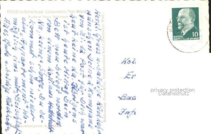 72291406 alte Postkarte Bad Liebenstein FDGB Volksheilbad Kurheim Haus Thueringen postalisch gelaufen Erhaltung siehe scans KatCode: 11110016063002