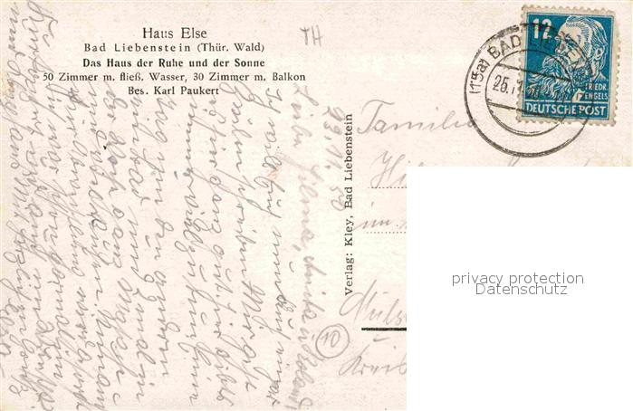 72843188 alte Postkarte Bad Liebenstein Haus Else Kurhaus postalisch gelaufen Erhaltung siehe scans [FriedD77] KatCode: 11110016063002