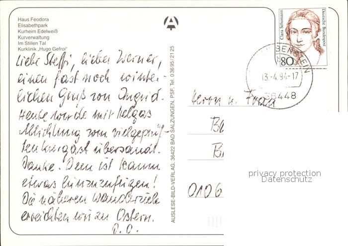 72406716 alte Postkarte Bad Liebenstein Haus Feodora Elisabethpark Kurheim Edelweiss Kurverwaltung Stilles Tal Kurklinik postalisch gelaufen Erhaltung siehe scans KatCode: 11110016063002