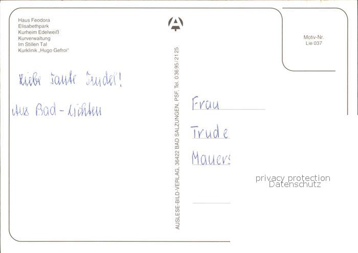 72382044 Bad Liebenstein Haus Feodora Elisabethpark Kurheim Edelweiss postalisch nicht gelaufen Erhaltung siehe scans KatCode: 11110016063002