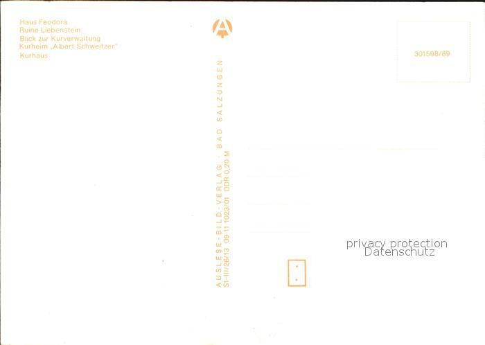 72543536 Bad Liebenstein Haus Feodora Ruine Liebenstein Kurverwaltung Kurheim Albert Schweitzer Kurhaus postalisch nicht gelaufen Erhaltung siehe scans [WerneD78 kv016box] KatCode: 11110016063002