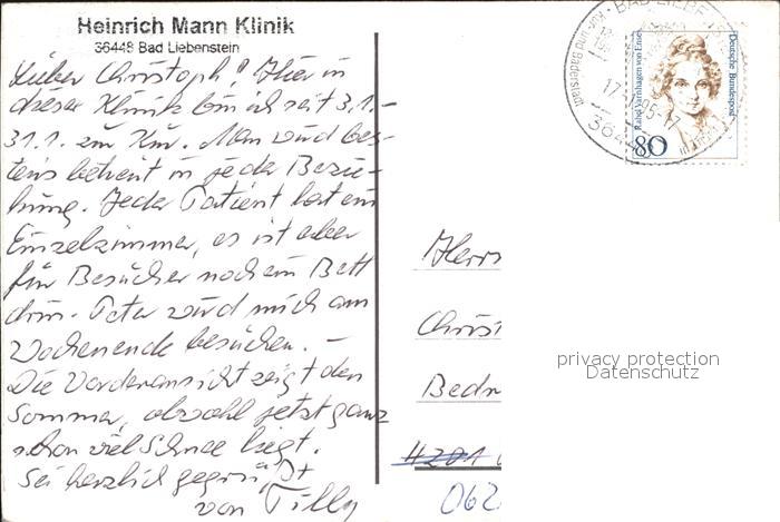 72443874 alte Postkarte Bad Liebenstein Heinrich Mann Klinik postalisch gelaufen Erhaltung siehe scans KatCode: 11110016063002