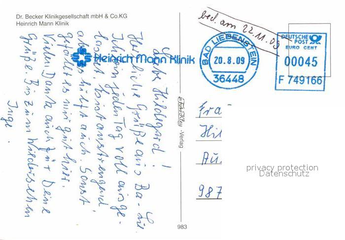 72640251 alte Postkarte Bad Liebenstein Heinrich Mann Klinik postalisch gelaufen Erhaltung siehe scans [NatalD47] KatCode: 11110016063002