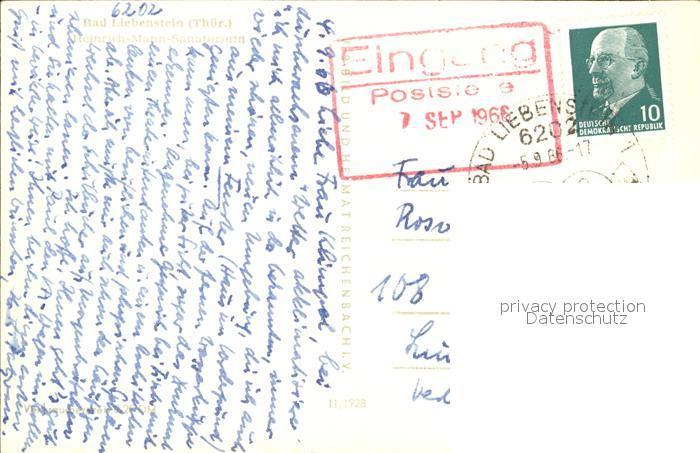 72477387 alte Postkarte Bad Liebenstein Heinrich Mann Sanatorium postalisch gelaufen Erhaltung siehe scans KatCode: 11110016063002