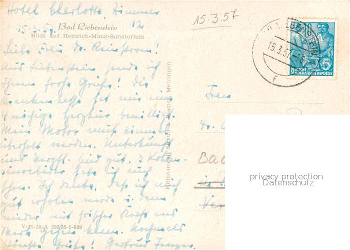 73073590 alte Postkarte Bad Liebenstein Heinrich Mann Sanatorium postalisch gelaufen Erhaltung siehe scans [WerneD78] KatCode: 11110016063002