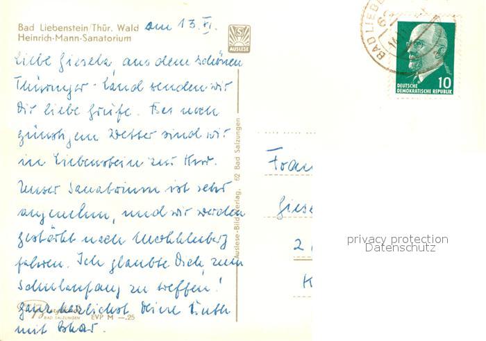 72927981 alte Postkarte Bad Liebenstein Heinrich Mann Sanatorium postalisch gelaufen Erhaltung siehe scans [LiesaD40] KatCode: 11110016063002