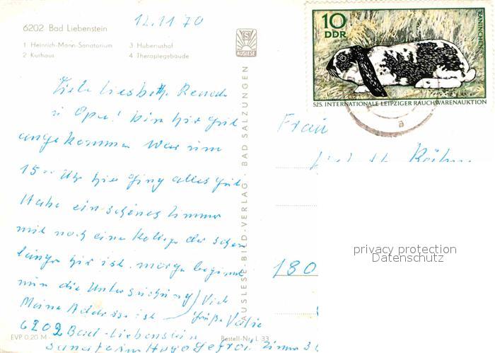 72847785 alte Postkarte Bad Liebenstein Heinrich Mann Sanatorium Kurhaus Hubertushof Therapiegebaeude postalisch gelaufen Erhaltung siehe scans [FriedD77] KatCode: 11110016063002