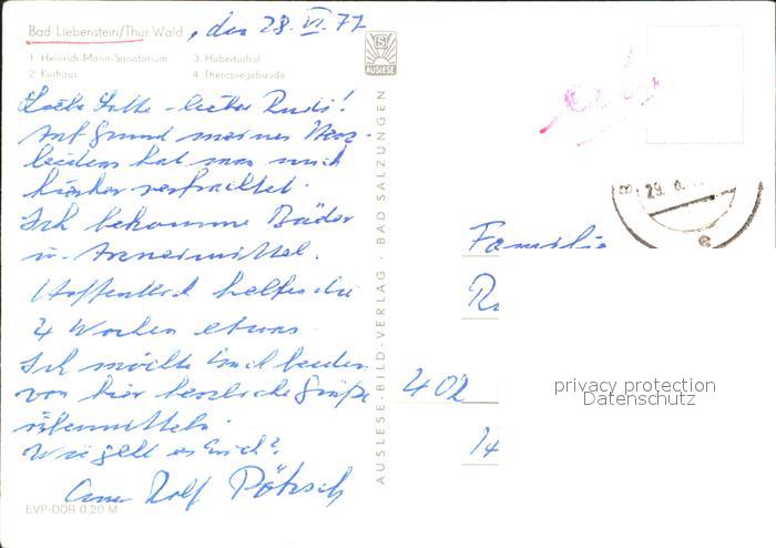 72324060 alte Postkarte Bad Liebenstein Heinrich Mann Sanatorium Kurhaus Hubertushof Therapiegebaeude postalisch gelaufen Erhaltung siehe scans KatCode: 11110016063002