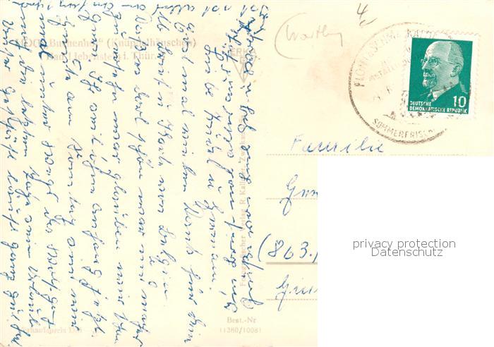 73841573 alte Postkarte Bad Liebenstein HOG Buchenhof Waldgaststaette Knueppelhaeuschen postalisch gelaufen Erhaltung siehe scans [FriedD77] KatCode: 11110016063002