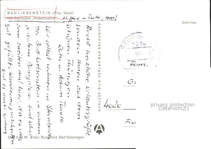 72336861 alte Postkarte Bad Liebenstein HOG Hubertushof Terrasse postalisch gelaufen Erhaltung siehe scans KatCode: 11110016063002