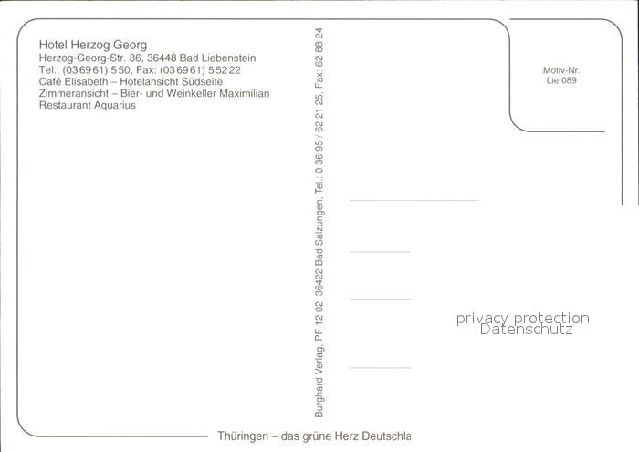 72426987 Bad Liebenstein Hotel Herzog Georg Restaurant Cafe postalisch nicht gelaufen Erhaltung siehe scans KatCode: 11110016063002