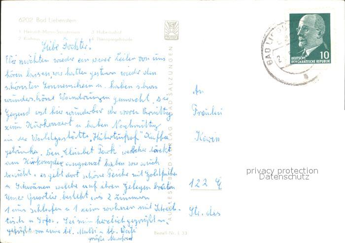 72263570 alte Postkarte Bad Liebenstein Hubertushof Kurhaus Heinrich-Mann-Sanatorium postalisch gelaufen Erhaltung siehe scans KatCode: 11110016063002