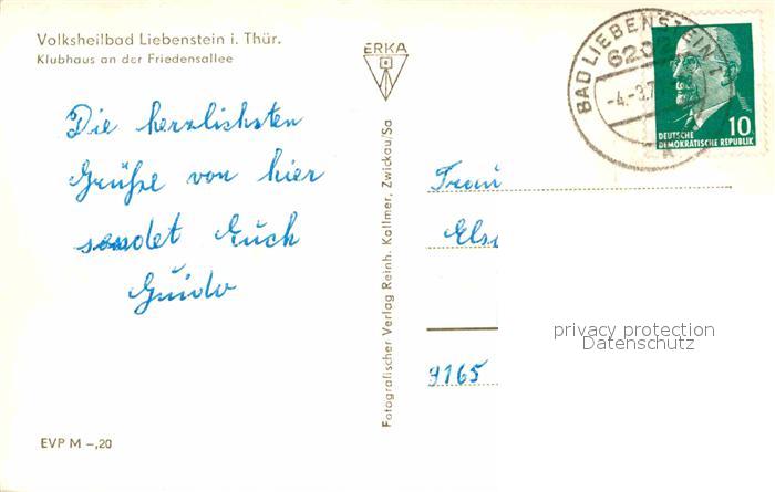 72698563 alte Postkarte Bad Liebenstein Klubhaus an der Friedensallee postalisch gelaufen Erhaltung siehe scans [LiesaD40] KatCode: 11110016063002