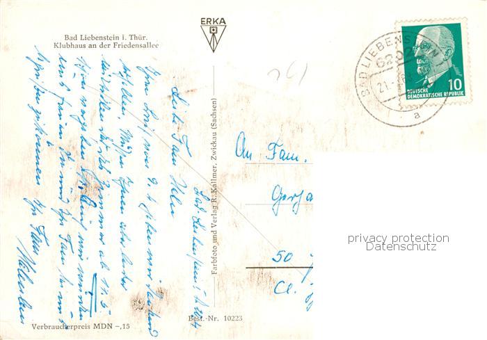 73841333 alte Postkarte Bad Liebenstein Klubhaus an der Friedensallee postalisch gelaufen Erhaltung siehe scans [WerneD78] KatCode: 11110016063002