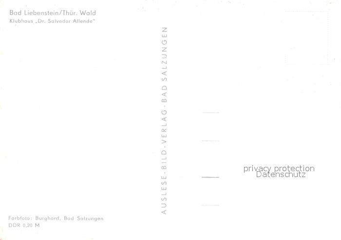 72856914 Bad Liebenstein Klubhaus Doktor Salvador Allende postalisch nicht gelaufen Erhaltung siehe scans [AndreD76] KatCode: 11110016063002