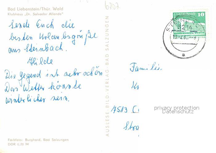 72699895 alte Postkarte Bad Liebenstein Klubhaus Dr Salvador Allende postalisch gelaufen Erhaltung siehe scans [FriedD77] KatCode: 11110016063002